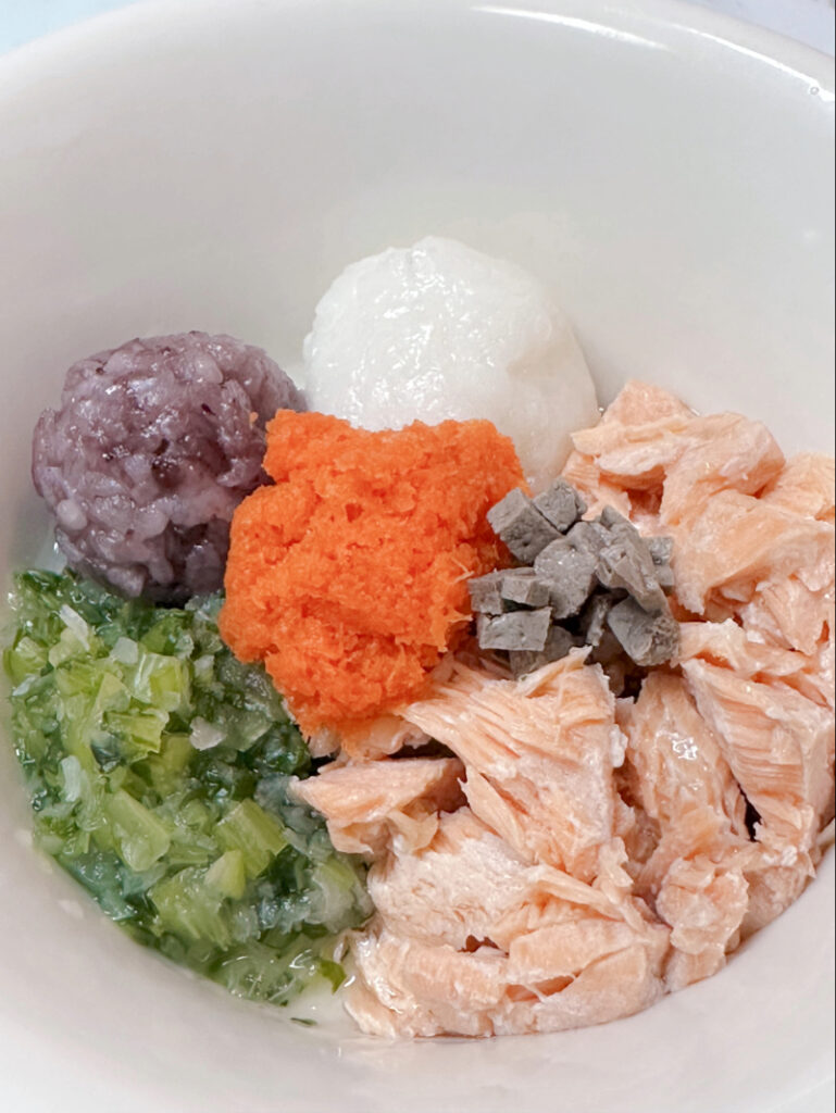 後、今回は入れていませんが、レンコンやキノコ系をブレンダーしたりして柔らかい状態であげたりしています。