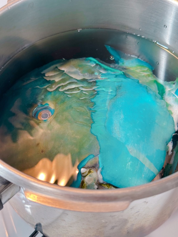 煮ると、緑色になりました😱