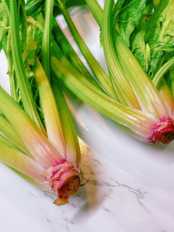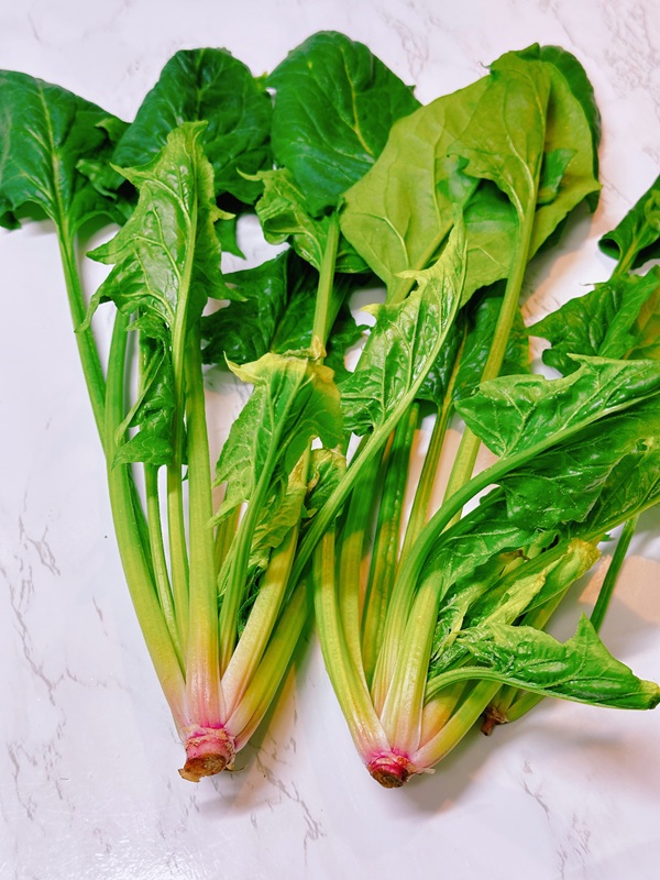 根本が赤いほうれん草は、上半身に症状が出やすい時に良いそうです。赤い部分を使ってみてね。