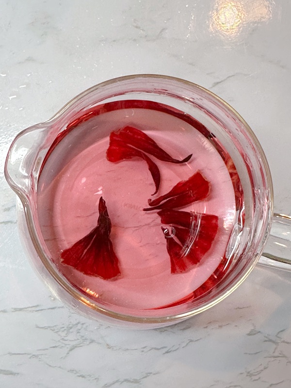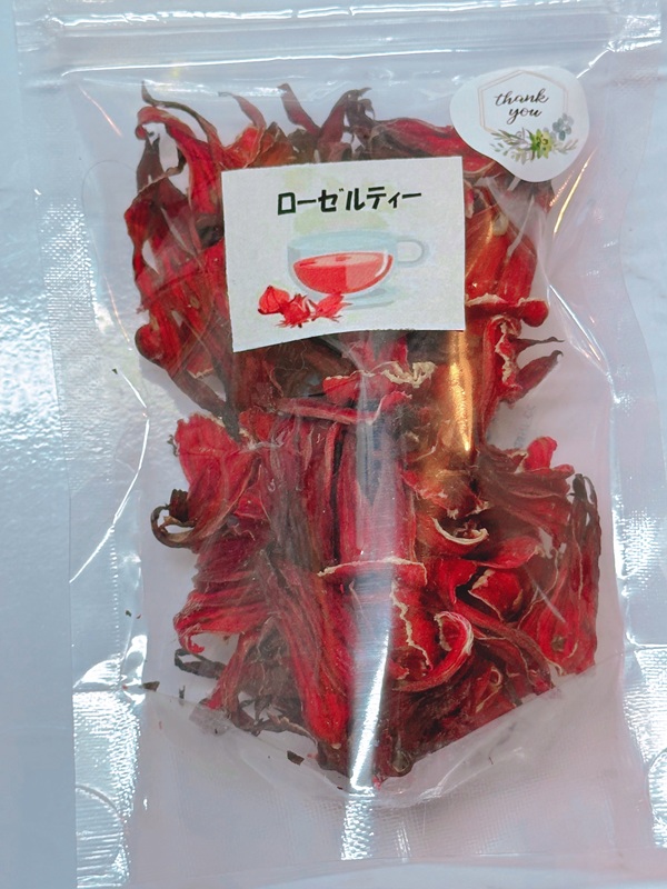 赤いのは、ローゼルで食用のハイビスカス🌺です。こちらも酸味として、少しだけ入れました。